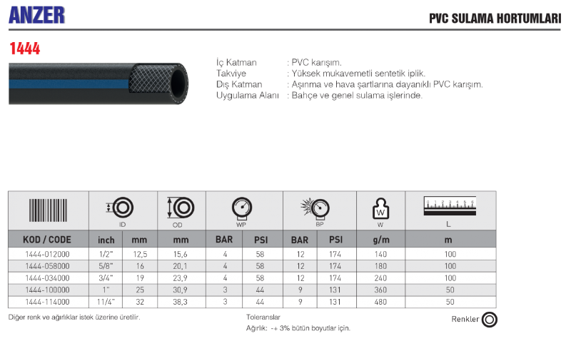 ANZER PVC SULAMA HORTUMLARI