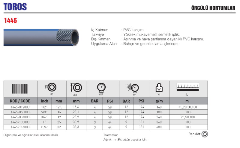 TOROS ÖRGÜLÜ HORTUMLAR