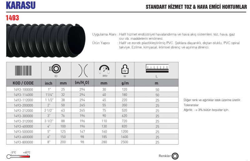 KARASU STANDART HİZMET TOZ & HAVA EMİCİ HORTUMLAR
