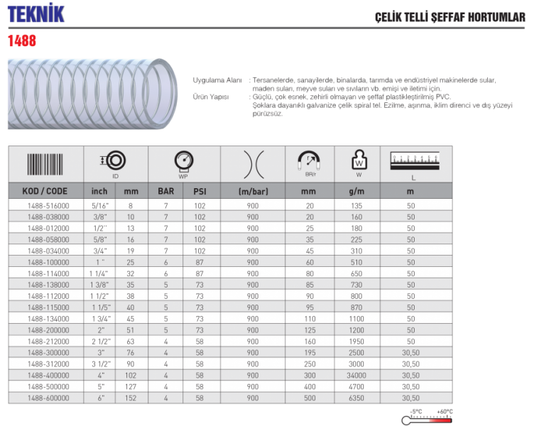 TEKNİK ÇELİK TELLİ ŞEFFAF HORTUMLAR
