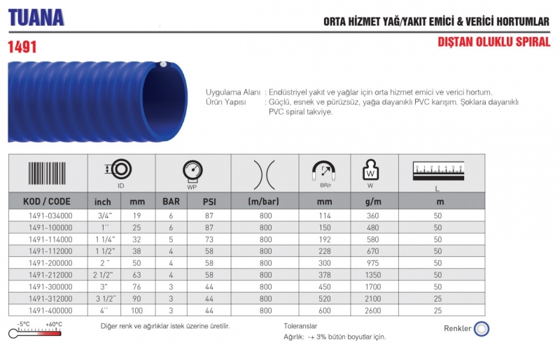 TUANA ORTA HİZMET YAĞ/YAKIT EMİCİ & VERİCİ HORTUMLAR