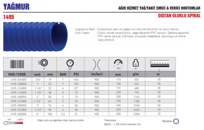 YAĞMUR AĞIR HİZMET YAĞ/YAKIT EMİCİ & VERİCİ HORTUMLAR