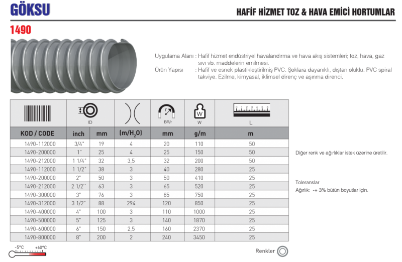 GÖKSU HAFİF HİZMET TOZ & HAVA EMİCİ HORTUMLAR