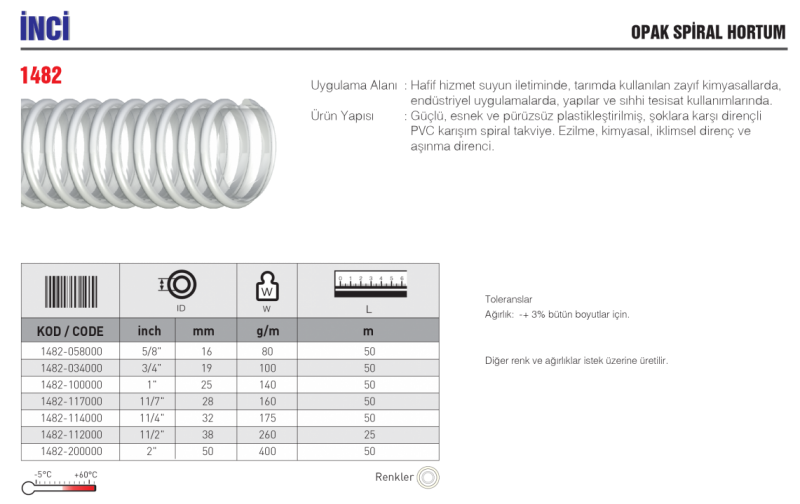 İNCİ OPAK SPİRAL HORTUMLARI