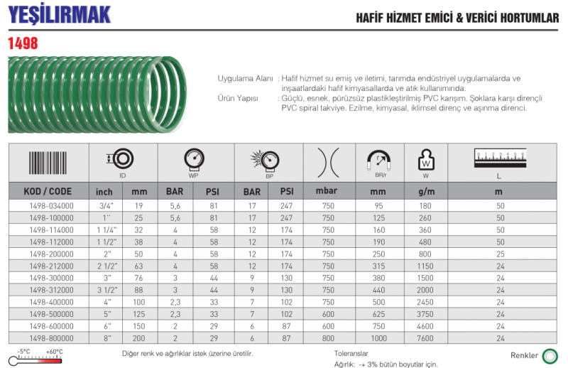 YEŞİLIRMAK HAFİF HİZMET EMİCİ&VERİCİ HORTUMLAR